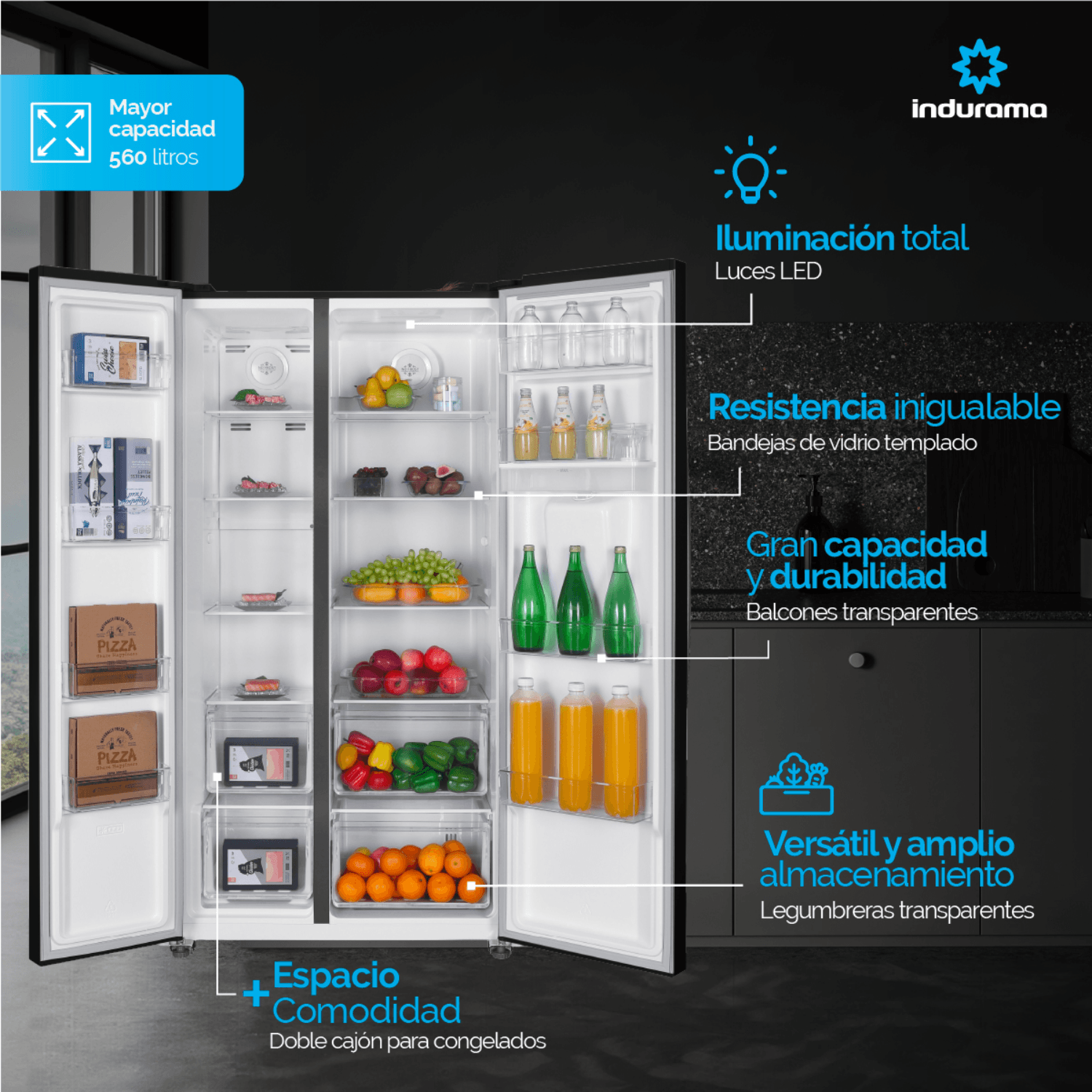 Nevecón Indurama Side By Side 560 Lts. Brutos RI 788 DI NEGRO